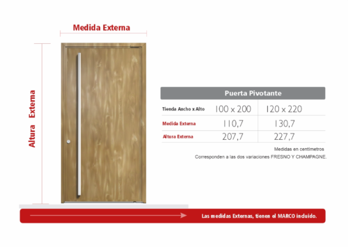 Características principales de la puerta exterior de acero fresno pivotante Línea Premium