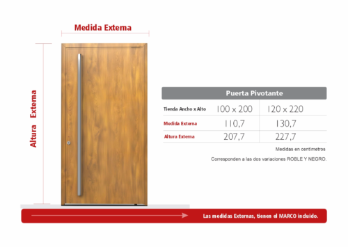 Características principales de la puerta exterior de acero roble pivotante Línea Premium