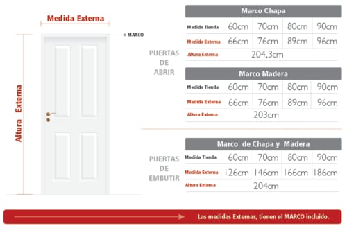 Para conocer las medidas finales de la puerta o el espacio requerido Descargar la FICHA TECNICA