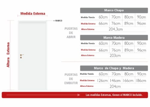 Para conocer las medidas finales de la puerta o el espacio requerido Descargar la FICHA TECNICA