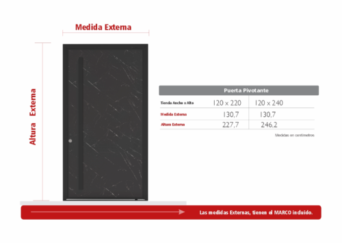 Características principales de la puerta exterior de acero Vidrio Templado + Carrara Línea Premium Pivotante